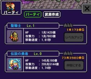 ゴールドを集めて勇者や仲間達をレベルアップさせていきます。