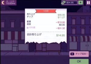 閉店後にはリザルト画面のように、その日の結果を見る事が出来ます。