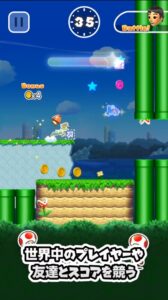 集めたコイン数と応援にくるキノピオ達の数で世界中のライバルとスコアを競い合います。