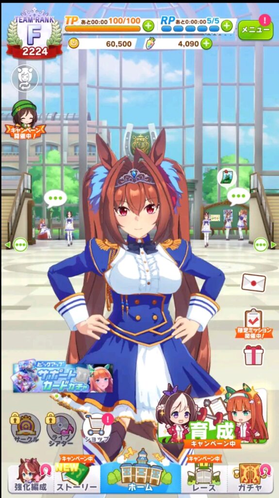 最初は「育成ウマ娘のガチャ」をガチャを引きましょう!